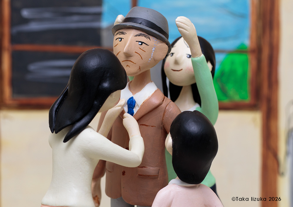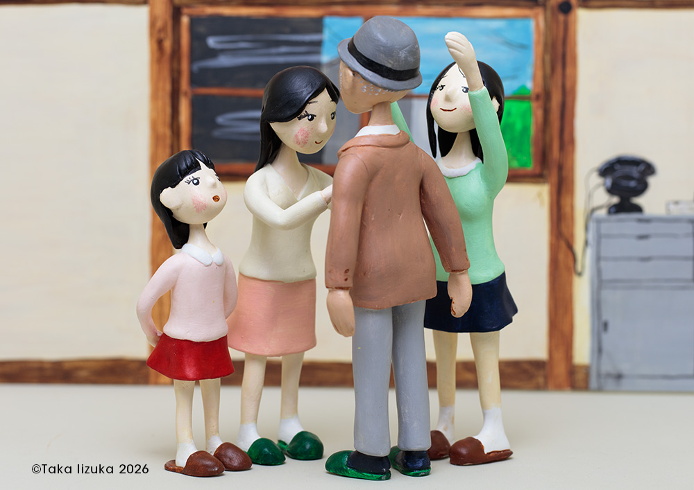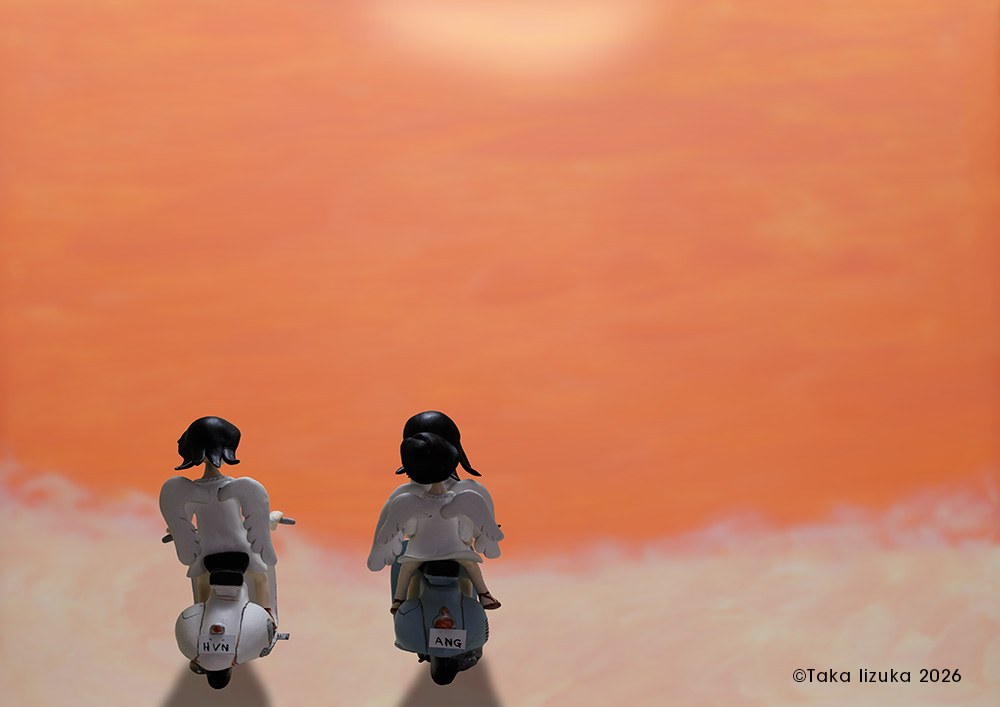 「天使達の課題」の続編。ストーリーがまとまらないが、思い浮かんだシーンを制作してみた。 すでに地上で生活を送っているアキの家に三人の天使は転がり込んで、家族としての生活を始める。 |